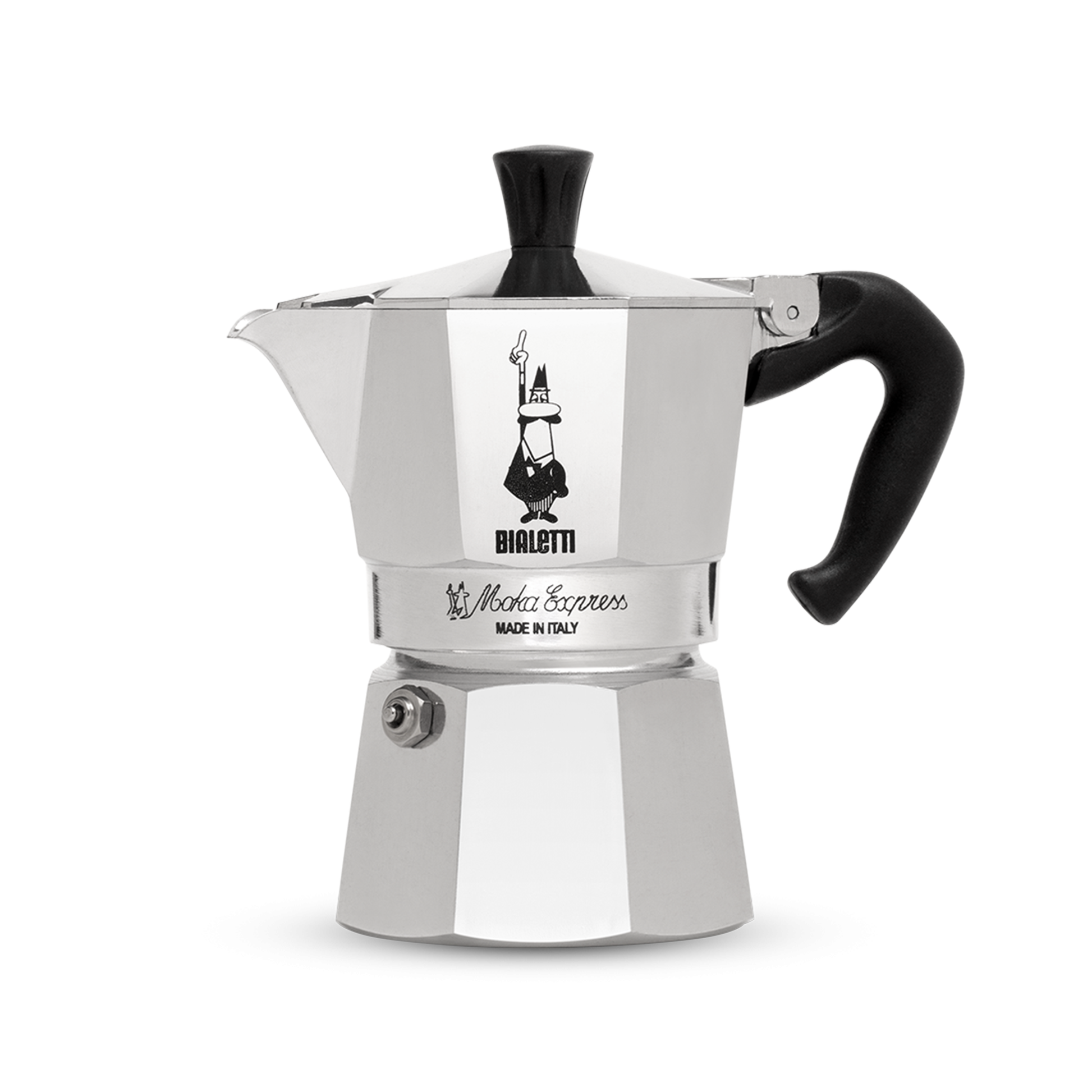 The original moka pot. This traditional Italian coffee maker offers the experience of the true Italian ritual of preparing a delicious cup of coffee. Its unique shape dates back to 1933, when it was invented by Alfonso Bialetti.