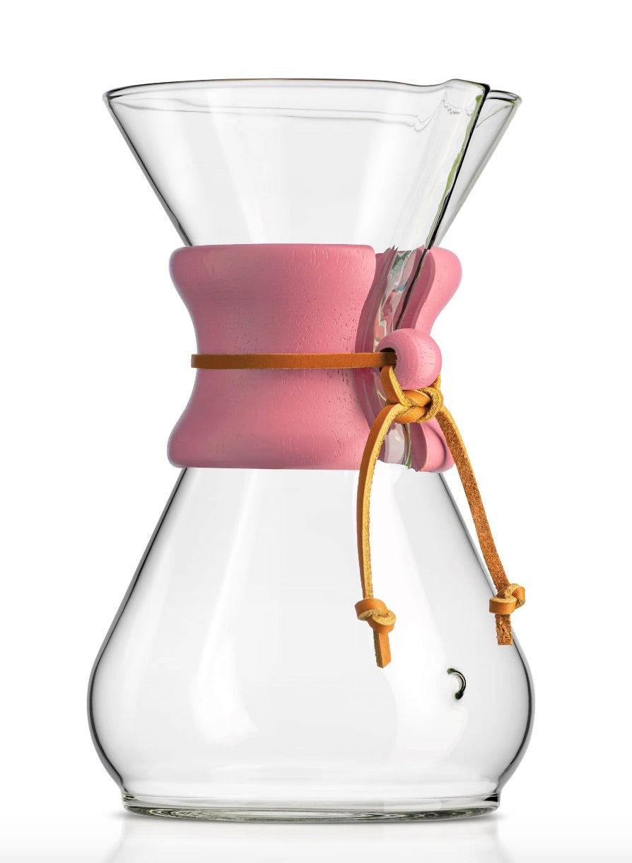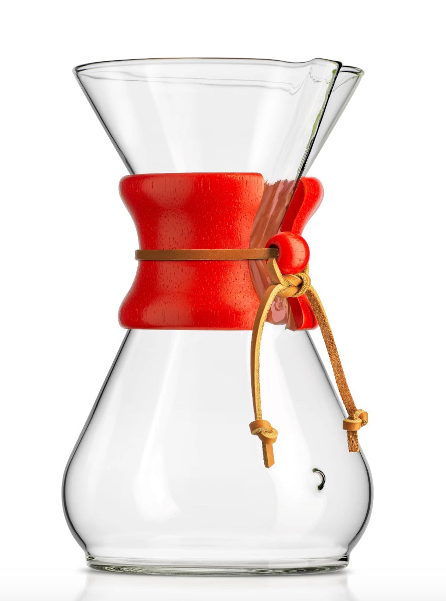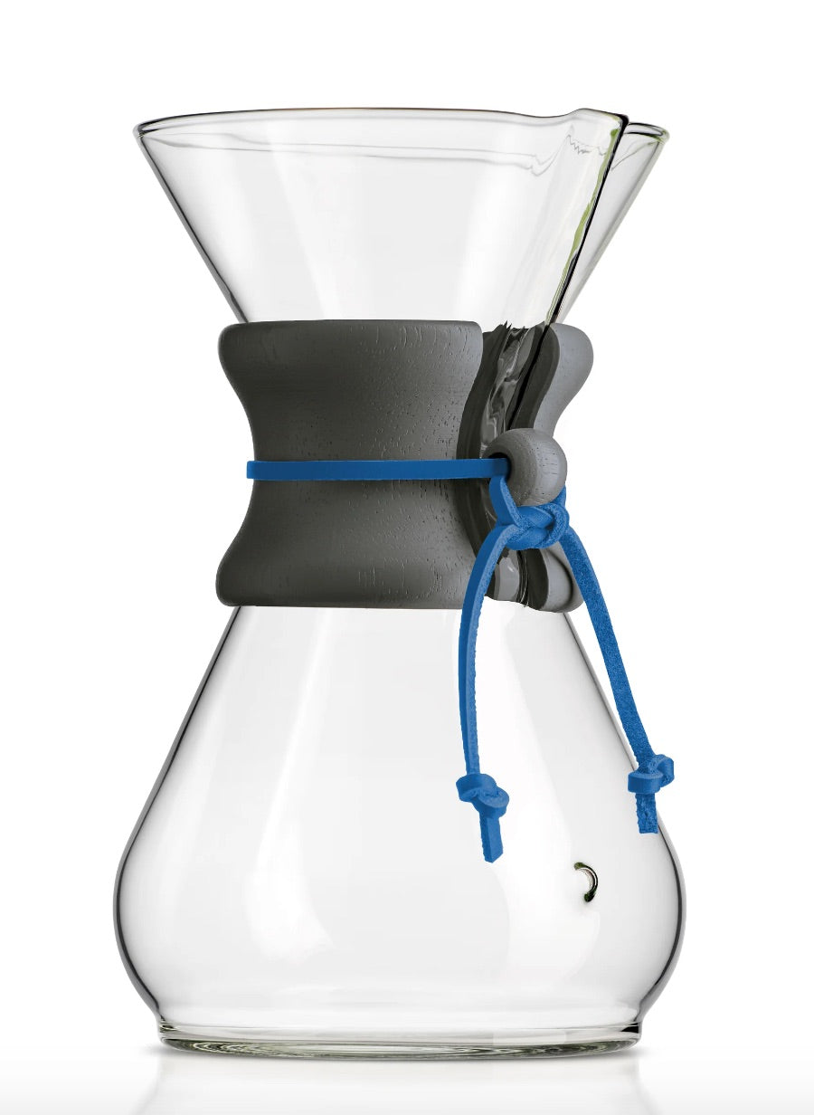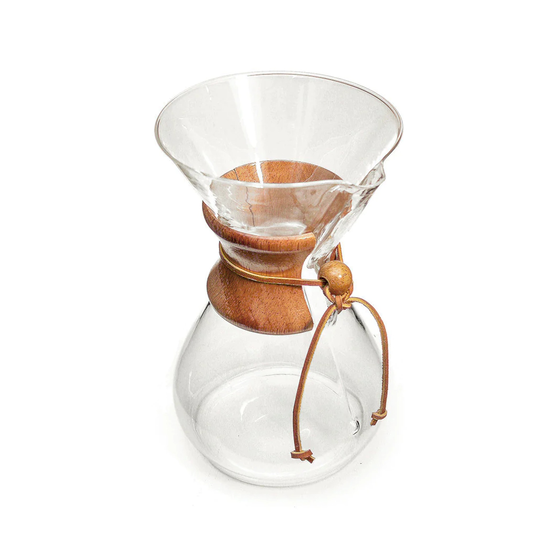 Chemex is a manual pour-over style glass coffee maker. Made of non-porous Borosilicate glass. Simple function and beautiful design create one of the best extractions for full-bodied coffee.